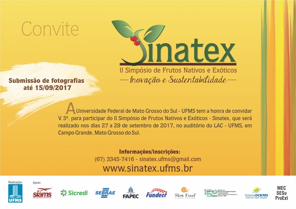 O II Sinatex – Simpósio de Frutos Nativos e Exóticos com o tema “Inovação e Sustentabilidade”  será realizado no Auditório do LAC na UFMS em Campo Grande/MS nos dias 27 a 29 de setembro de 2017.
